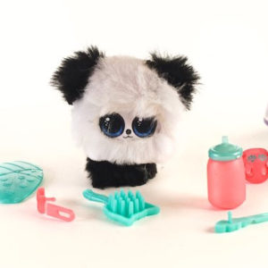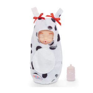 Cada muñeca viene con un chupete y un mono de impresión animal intercambiable.